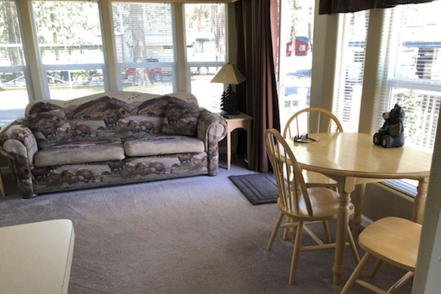 Osprey - beautiful, cozy cabin has vaulted ceilings and an open deck. Features queen bed, 2 twin beds in the loft and Simmons mattress on Futon that makes into double bed. Full size bath with shower over tub. Beautiful views of the lake from dining area and living area bay windows. This completely furnished cabin includes all linens and sleeps 6.